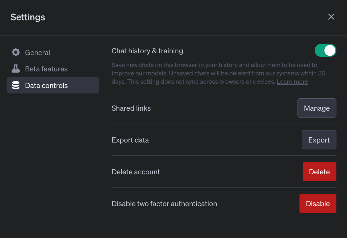 If you trust OpenAI and your organisation allows it, you can turn off “Chat history & training” to exclude your data, but that’s up to you, in Settings, here,
